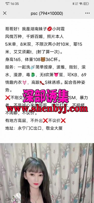 妹子自己租房,干净整洁,人比较健谈。服务做的认真不机车,一口一个亲爱的,舌头灵活,毒龙一绝。 ...